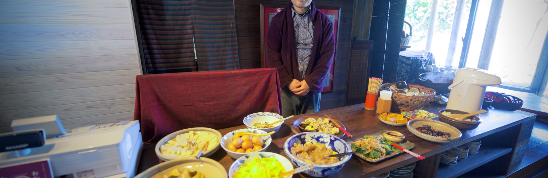 歴史好きの春樹さんが邑南町の遺跡発掘にも関わる中で、縄文時代は人々が食べ物を分け合っていたという話から着想を得て「縄文村」と名付けた。ただ、料理は素人。地元で葬式の時に集落の女性が集まり、料理を出した「おとき(精進料理)」にヒントを得て、近所のおばあさんたちに協力を求めた。