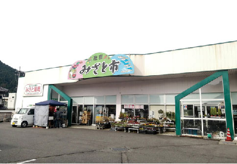 - 地元農産物の直売と、スーパーや薬局が共存する商業施設です。飲み物など補給してちょっと一休み。