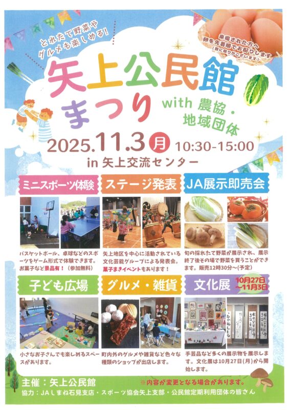 協力:JAしまね石見支店・スポーツ協会矢上支部・公民館定期利用団体の皆さん