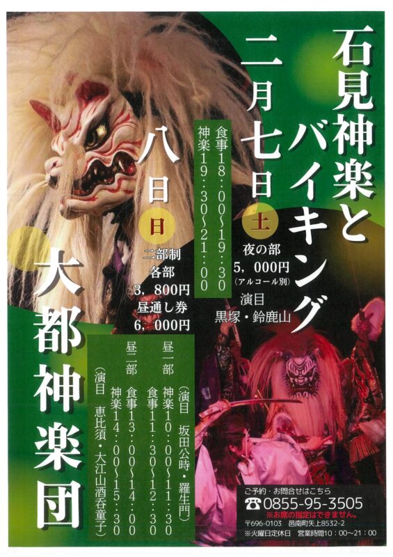 ⏰時間:食事 18:00~19:30 神楽 19:30~21:00
