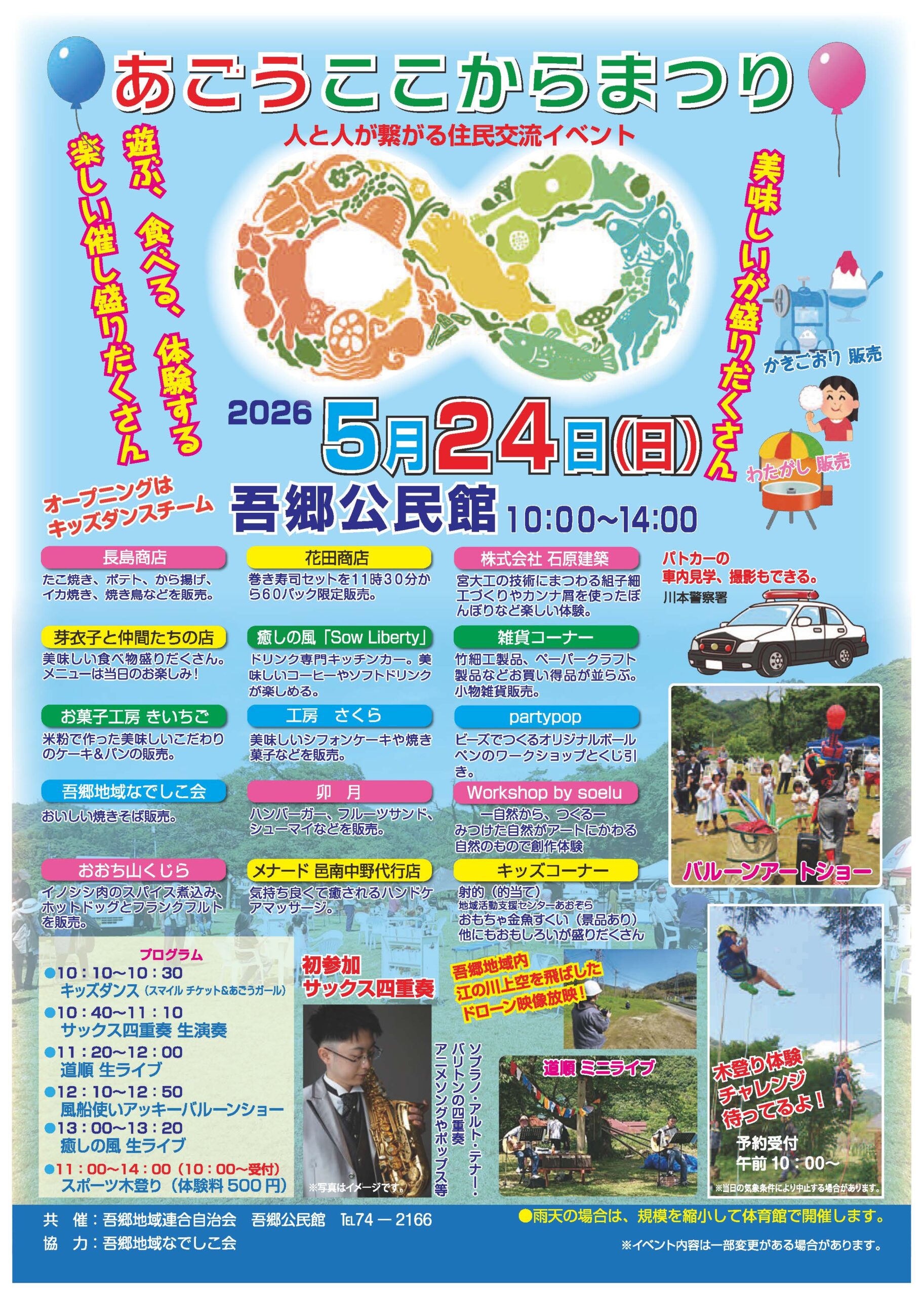 チラシのダウンロードはこちら ☞ 2026あごうここからまつり