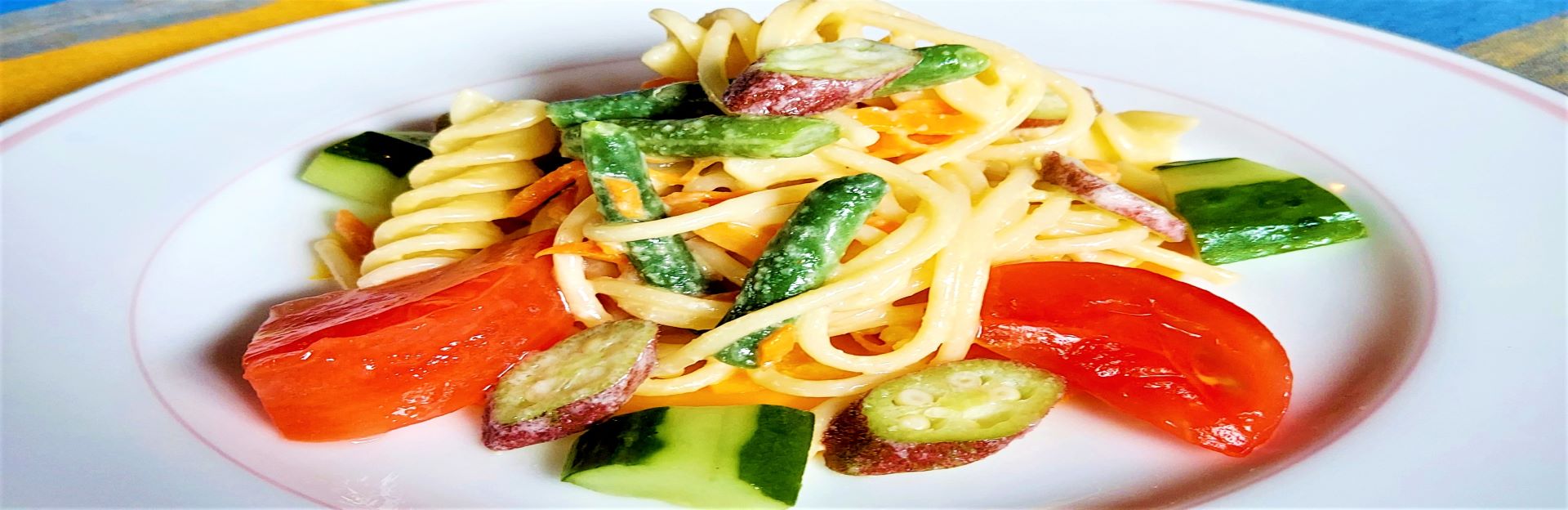 隣の畑で採れた新鮮野菜のサラダを提供しています。