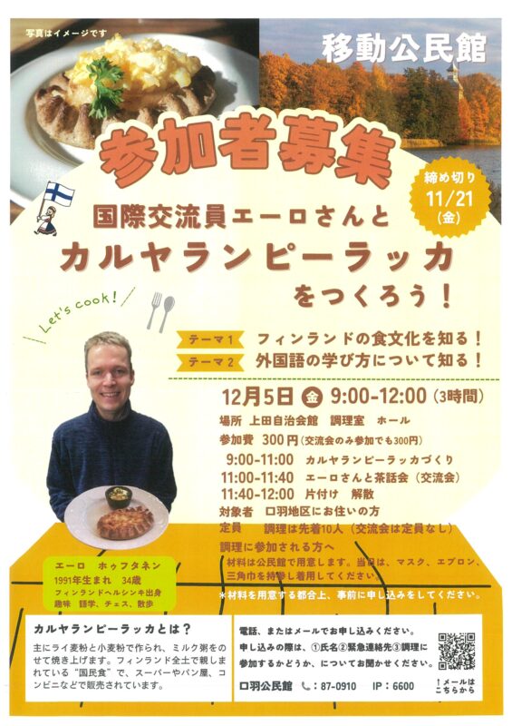 地元に住む国際交流員エーロさんと一緒に、楽しくクッキング&交流タイム!