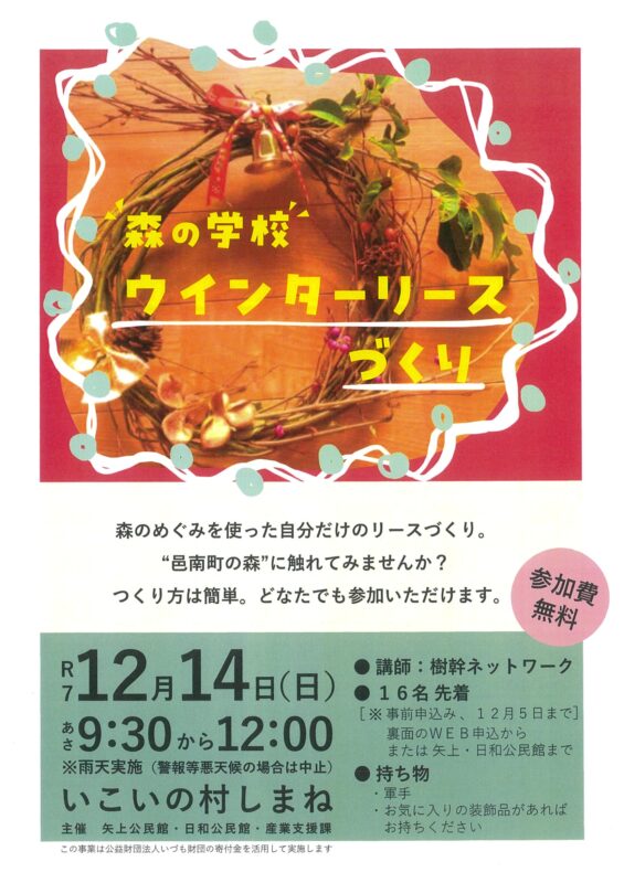 邑南町の森のめぐみを使って“自分だけのリース”を作ってみませんか?