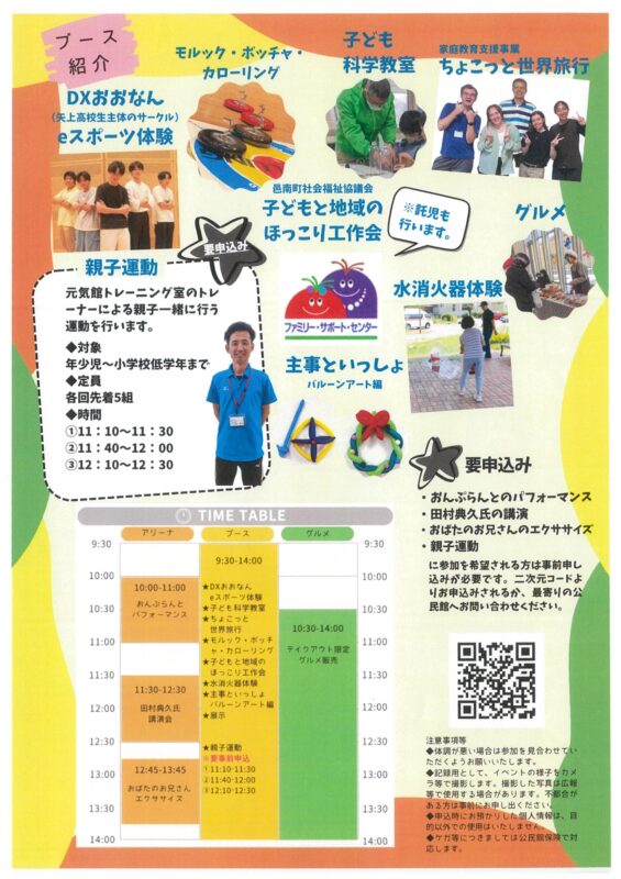 今年はパフォーマンスショー、健康に役立つ講演会、ポジティブエクササイズ、科学教室、親子運動、eスポーツ体験など内容盛りだくさん!